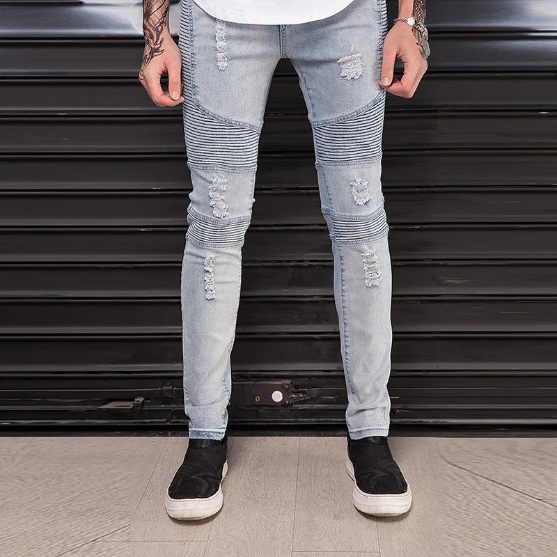Men Spring Autumn Clothing Good Quality pant New Design Denim Skinny Jeans Distressed cotton fashio