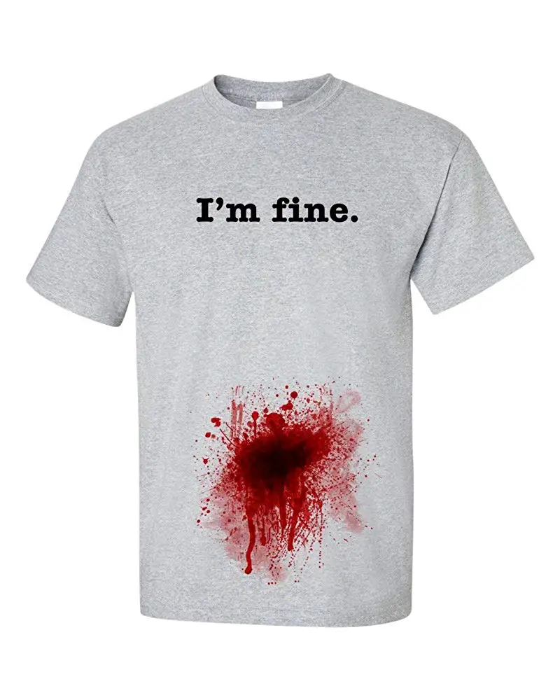 BEST QUALITY Men 2019 Brand Clothing Tees Casual Male Designing T-Shirt I'M Fine Blood Stained T-Shirt Comfortab